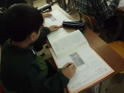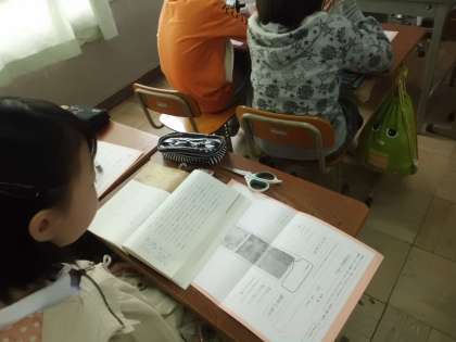 今日は,鳥獣戯画に対する筆者の見方と自分の見方を比べてみました。自分にはない見方をしている筆者の見方や表現を,熱心に読みとっていました。