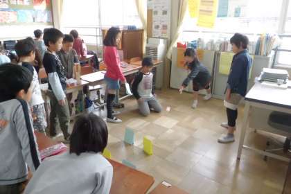 お兄さんお姉さんとして,優しくやり方を教えてあげたり,「わぁ!すごい!」と盛り上げたりする姿が見られました。自分たちが考えたゲームを1年生が楽しそうにしてくれて,2年生も嬉しそうでした。