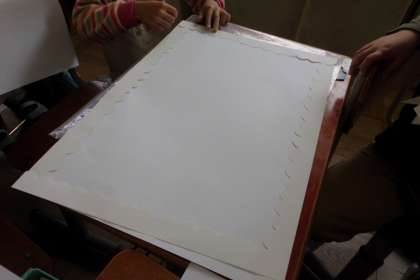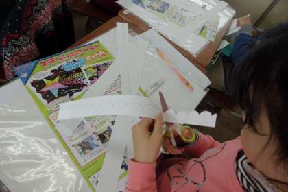 図工「うつしてみると」では,紙版画を作っています。今日は,枠の模様を考えて,枠作りをしました。「海のイメージで,波みたいにしたい。」「ちょっとむずかしい模様に挑戦したいな。」切り取る作業は黙々としていました。