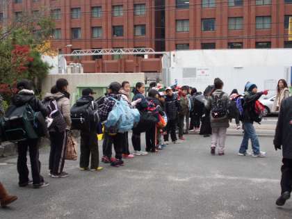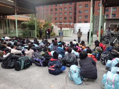 今朝から寒さが厳しくなっていますが,75名全員元気に出発しました。