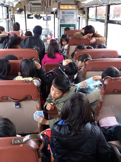 バスの中は,超リラックスムードです。