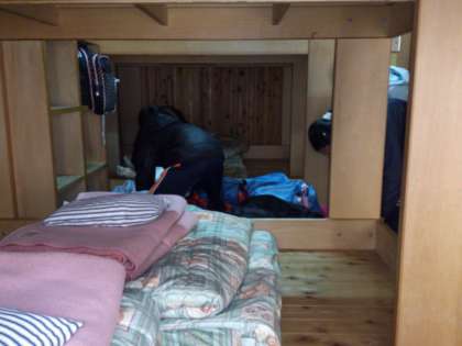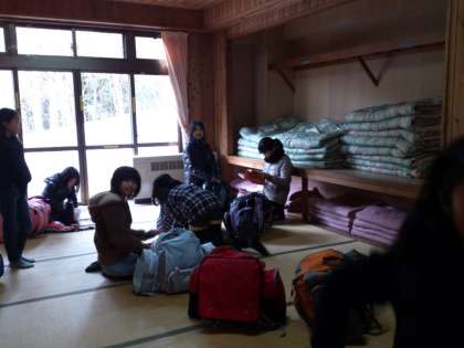 布団がたたんであるのを見て,「寝られへん!」リーダー室に飛び込んできました。