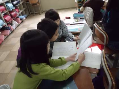 しかけカードの<作り方>で,分かりやすかったところ・言葉について,話し合っています。