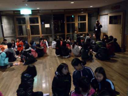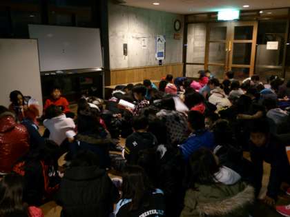 一日の活動が終わり,反省会です。