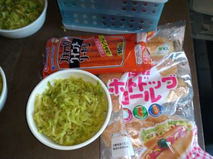朝ごはんは,自分でホットドックを作ります。牛乳パックで作るので,「パックドック」と言われます。この材料がどのようなホットドックに変身するのでしょうか?