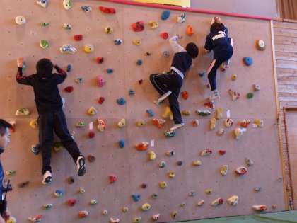 同じ色のホールドを選んだり,よく似た形を選んだりして上るなど,自分自身にチャレンジしています。