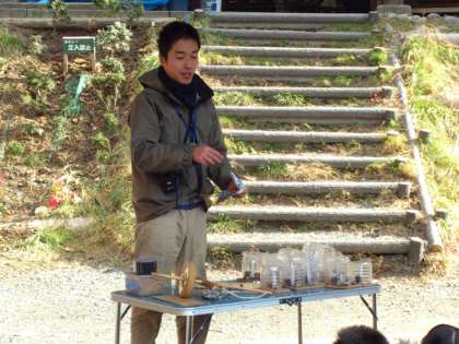これから「火おこし体験」をします。みんなで力を合わせて火をおこします。