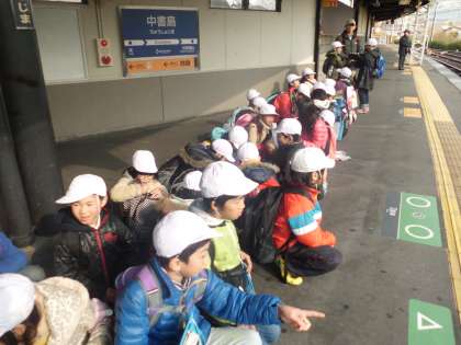 バスを降りて,電車を待っています。