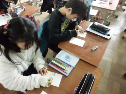 「どんな言葉がいいかな…」「この言葉に合う絵は…」と,いろいろ考えたり,友達と話し合ったりしながら,楽しく作ることができました。
