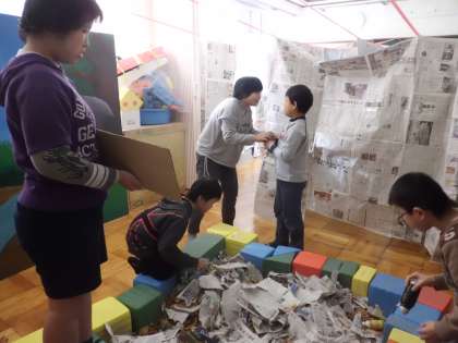 作品作りの休憩時間には,プレイルームに作っためいろとたからさがしゲームに挑戦してもらいました。みんなとても喜んでくれたので,嬉しそうなわかばっ子でした♪