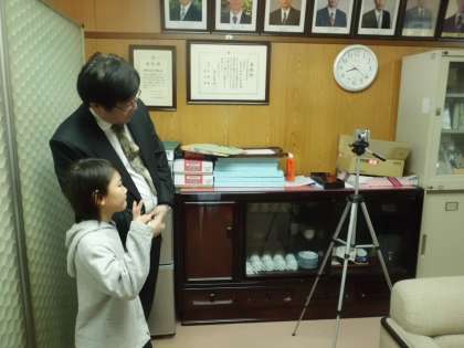 校長室に入ったのは,初めてのようで,ドキドキ緊張した表情でしたが,うれしそうな様子も見せていました。