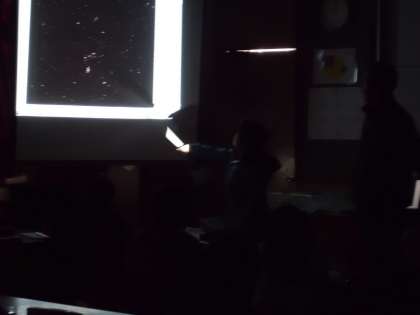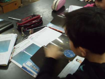 写真を見て,オリオン座をつくる7つの星を探したり,オリオン座の位置について学習したりしました。