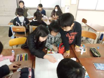 4年生も,他の学年の友達と,話をしたり相談をしたりしながら,楽しそうに活動していました。