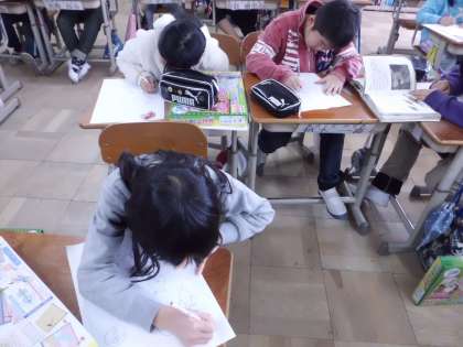 今日は,ゲームの板にかく絵を考え,紙に下絵をかきました。