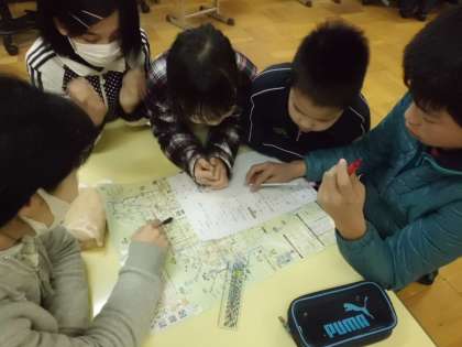 「ここからこう行って,それから・・・」と,みんなで路線図を囲みながら話し合っていました。