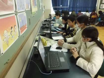 今日はパソコンを使って,自分たちが乗るバスや電車の時刻を調べました。