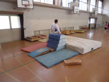 初めは怖がっていましたが,練習用とび箱で練習していくうちにコツをつかめたようです。