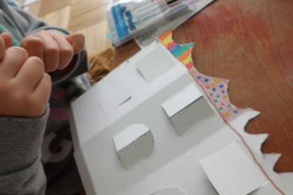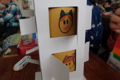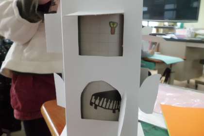 図工「まどをひらいて」では,まどを開いて中をのぞく楽しい作品を作っています。