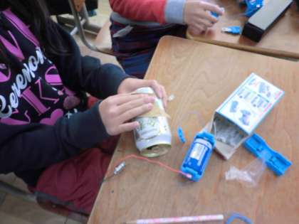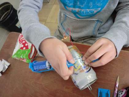 アルミ缶をサンドペーパーで磨くと電気を通すことを見つけました。