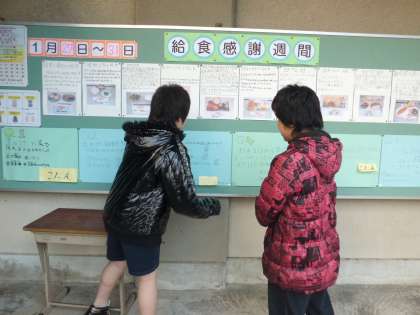 今週は「給食感謝週間」ということで,給食の歴史や食べ物のことを学習しました。給食委員会が作ってくれた掲示でも学習しました。6年生の2人にとって,小学校の給食を食べられるのもあと2か月弱です。おいしい給食を毎日食べられることに感謝しながら食べたいですね。