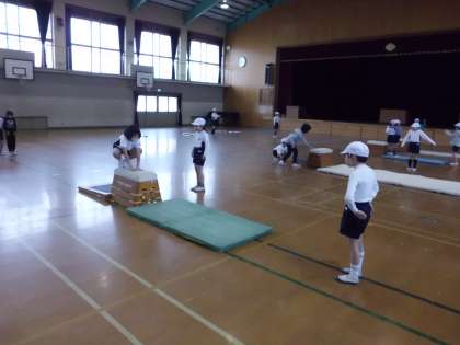 どんな跳び方があるのか,どの跳び方が跳べるのかを確かめています。