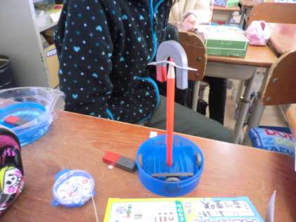 くるくるまわる磁石を楽しそうに眺めていました。