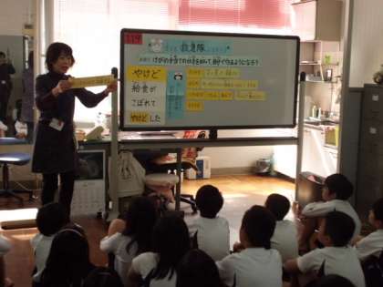 計測の前に,佐々木先生から「子ども救急隊になろう」のお話がありました。
