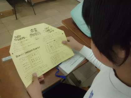 「私こんなにちっちゃかったんだ〜。」「45センチも伸びてる!」と,自分の成長の足跡に見入っていました。