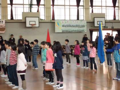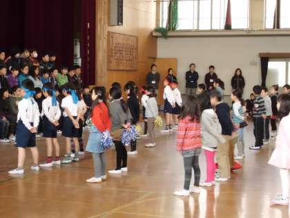 6年生を送る会の出し物では,応援隊になって6年生にエールを送りました。運動会の時に輝いていた6年生みたいに僕たちもなりたい,そして,中学校へ行かれてもお元気で頑張ってください,そんなメッセージをこめて一生懸命披露しました。6年生のみなさん,本当にお世話になりました。
