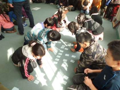 普段は同じクラスの友達としか対戦したことがなかったのですが,今日は違うクラスの友達ともできるので,嬉しそうでした。