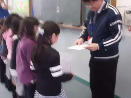 その場で校長先生に賞状を書いてもらい,渡していただきました。