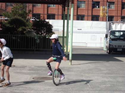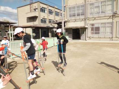 今日は,一輪車・竹馬に挑戦しました。