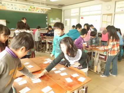 クラスで作った,『音訓遊び歌かるた』でかるたあそびをしました。