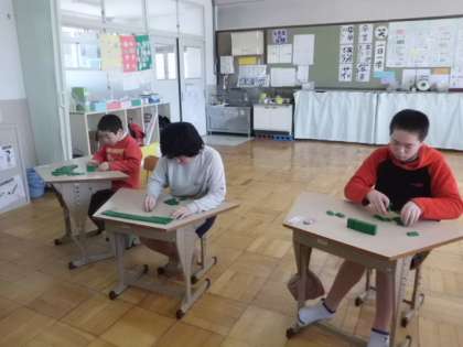 今日は積み木を使って数・計算の学習をしました。同じ数にわけるには何個ずつ配ったらいいのかな?予想を立ててから実際に配ってみて正解を確認しました。