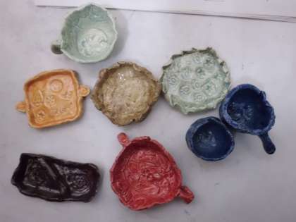 陶芸教室で作った作品が焼き上がり,学校に届きました。