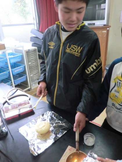 カルメ焼きがふくらみました。でも、かなり難しくてみんな苦労しました。