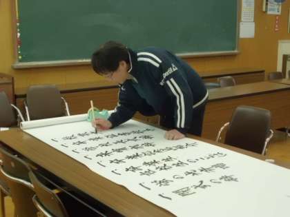 今日は,校長先生が,一筆一筆心を込めて式次第を作成中です。