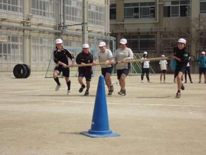 台風の目です。棒から置いていかれそうになったり,とばされそうになったり・・・ハプニング続出でしたが,みんなニコニコ楽しく走りました。