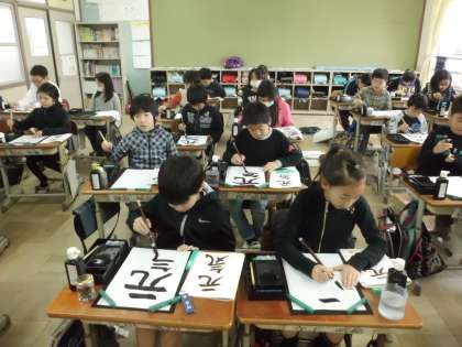 最後の習字は,4年生の習字のまとめとして「元気」を書きました。