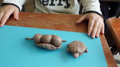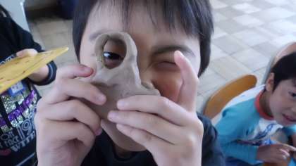 「おだんごきれいに作れたよ。」と楽しく作った作品で友達とお話していました。みんなの様子を写真で撮っていたら,「先生,はいチーズ!」と逆にカメラで撮られてしまいました。