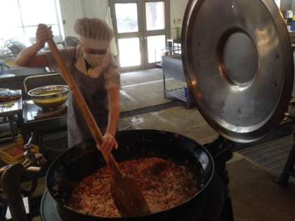 4名の給食調理員さんが一生懸命作ってくださっています。