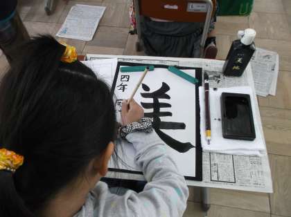 『美』という字の画と画の間に気をつけて,ていねいに書きました。