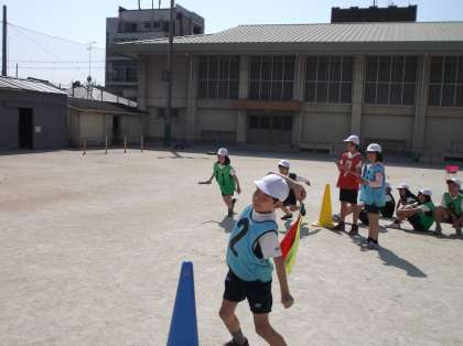 体育の時間の前に,中間休み・昼休みに練習しているグループもありました。