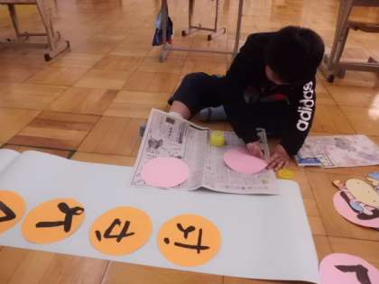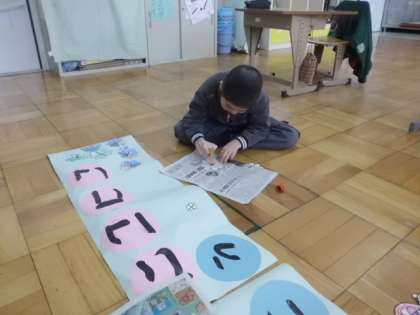 学級目標の掲示を作っています。みんなの力を合わせて作りました。