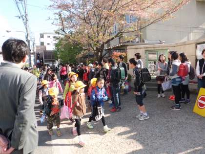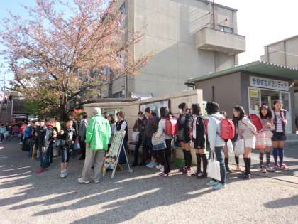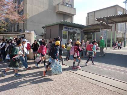 集団登校で来た人から順に校門に並んで,全校のお友達に気持ち良くあいさつをしました。