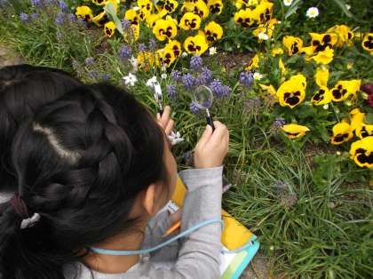 虫めがねで,細かいところまでしっかり観察しました。