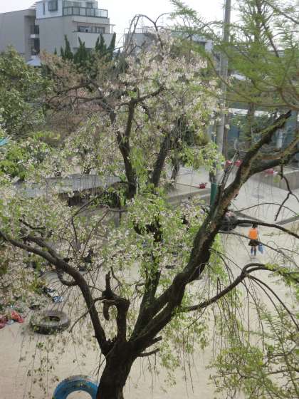 桜の木には,メジロが,きれいな声で鳴いています。