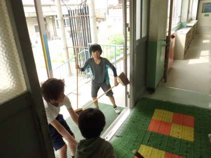 それぞれの場所に分かれて,一生懸命掃除をしています。
