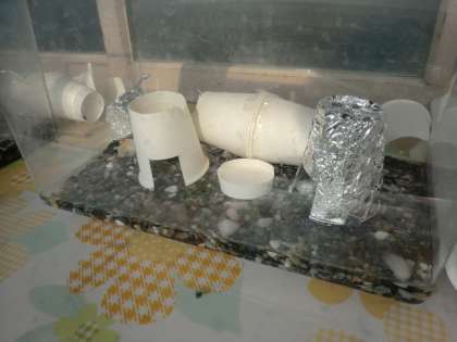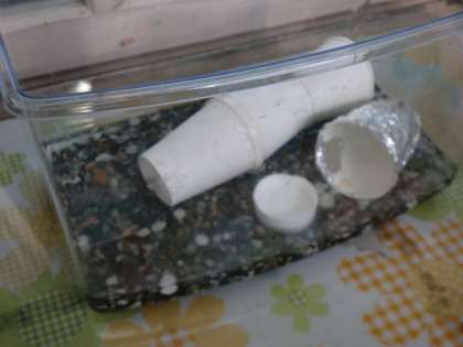 カニたちが生活しやすいように,図鑑で調べて,かくれる場所などを工夫して作り,がんばって育てようとしています。