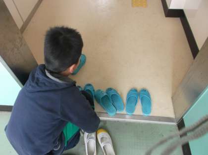 男の子トイレの入り口で,スリッパをそろえてくれている子がいました。